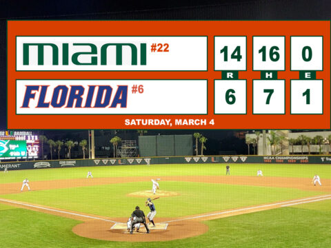 A night to celebrate for the University of Miami. The men’s basketball team clinched the ACC title and earns the #1 seed for the ACC Tournament and our baseball team trailing by 5 runs going into the 6th inning lights…