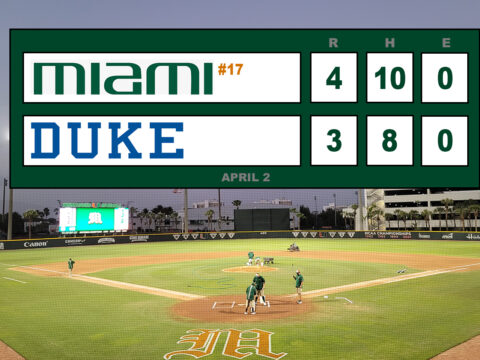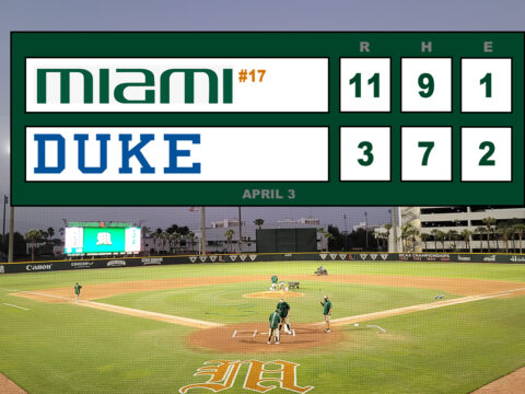 Power And Pitching Lead Canes To 4-3 Victory Over Duke, Go For Sweep Sunday