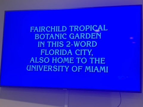 On Wednesday night, Jeopardy! was on CBS and, if you were watching, Coral Gables was the question. Game show host, Alex Trebek, read the answer, “Fairchild Tropical Botanic Garden in this 2-word Florida City, also home to the University of…
