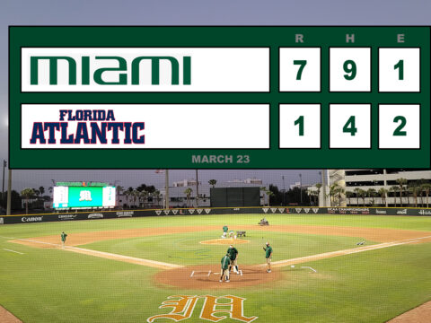 Late Innings Surge Leads Canes To Victory Over Owls, 7-1
