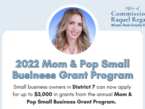 Miami-Dade County Commissioner Raquel Regalado is launching the 2022 cycle of Mom & Pop grants for small businesses in District 7! Applications to apply for up to a $3,000 grant will be accepted March 21 through April 8. Applications are…
